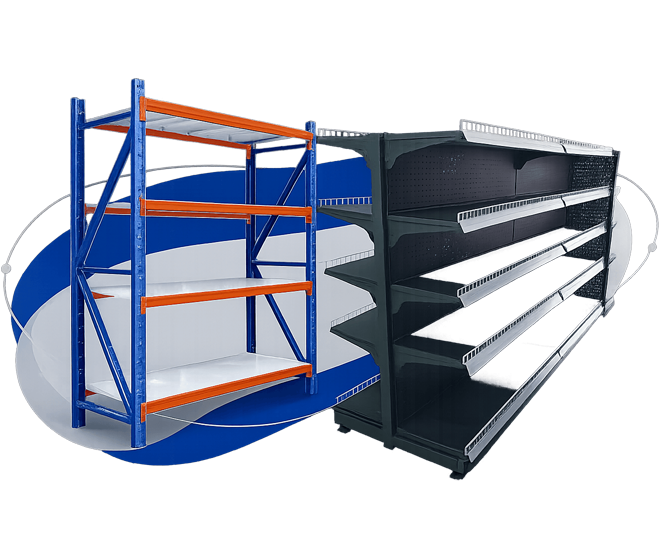 Fabricación de góndolas metálicas - Fabricación de racks y estructuras para almacén - Muebles metálicos y de melamina - Diseño y asesoría en distribución de espacios - Corte láser y doblado de metal - Instalación de sistemas de almacenamiento