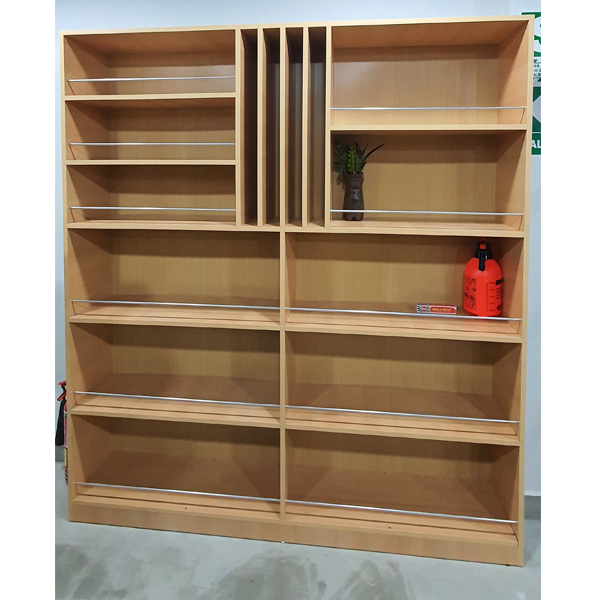 Mueble de melamine color claro, ideal para exhibición y almacenamiento en tiendas, oficinas o negocios. Diseño funcional, resistente y adaptable a diferentes espacios comerciales.